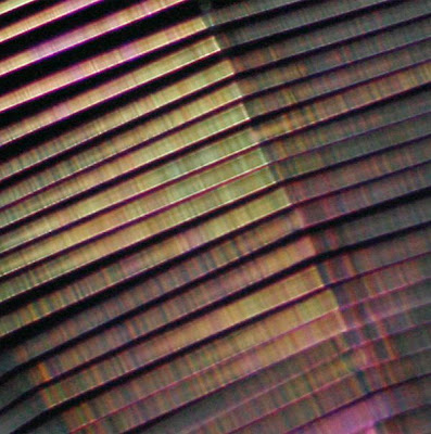 My first thought was that the spider web formed a diffraction grating. That doesn’t make sense since the fibers are too far apart. I believe it is due to dew on the web.